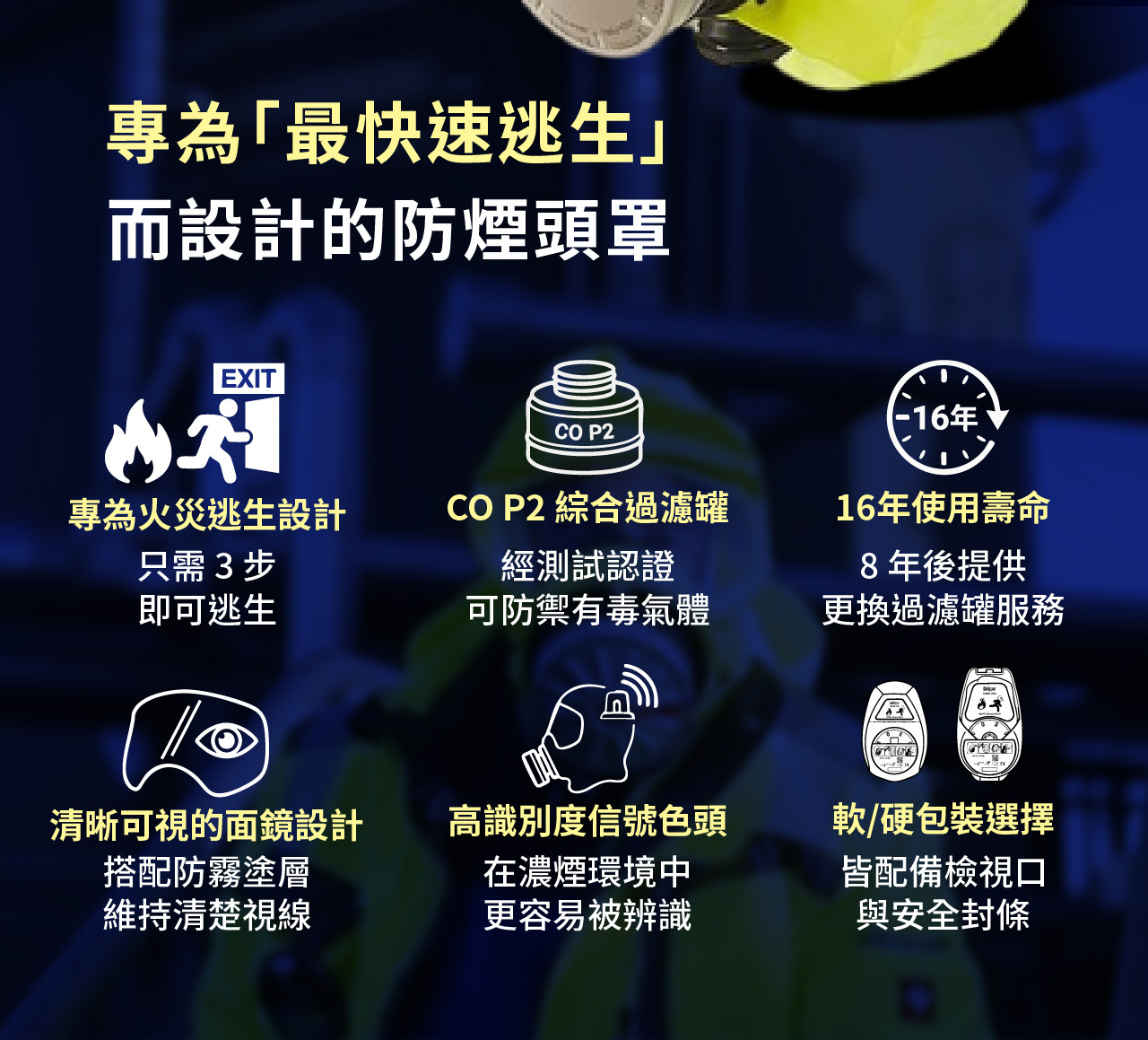 德國專業防護品牌|防煙防毒逃生|清晰視野|CO P2 過濾